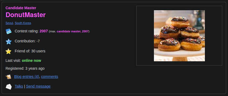 Hello! I am the “infamous” DonutMaster, a high school student who is passionate about ethical hacking and competitive programming. If you have joined the TryHackMe discord server, I am almost 99% sure you know me as DonutMaster (or DonutMustard) if you are pretty active. Explore the walkthroughs I have created for challenges and solutions for competitive programming problems.